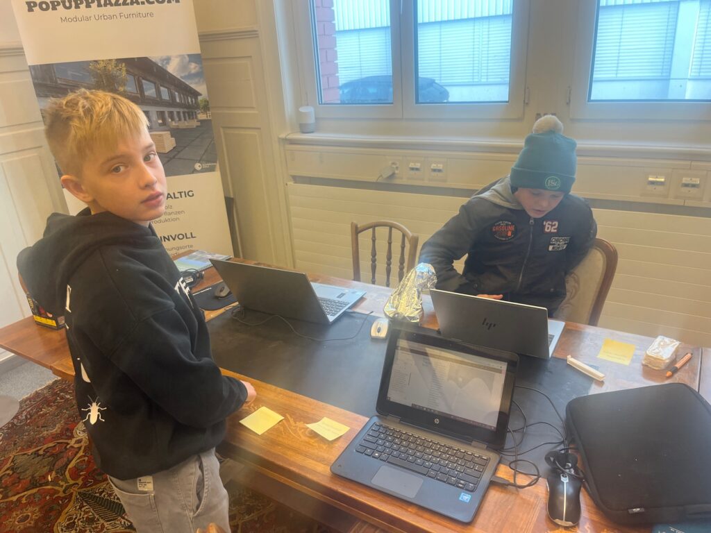 Wir sind als aller erstes ins Popuppiazza Büro in Uzwil. Dario und ich machen gerade eine Webseite ( ich mache diese). Livia macht Holzstrukturen. Wir sind insgesamt zu viert. Unser Leiter Beat mein Kolleg Dario und seine Schwester Livia und ich(Angelo). Es macht bisher sehr Spass 😀
