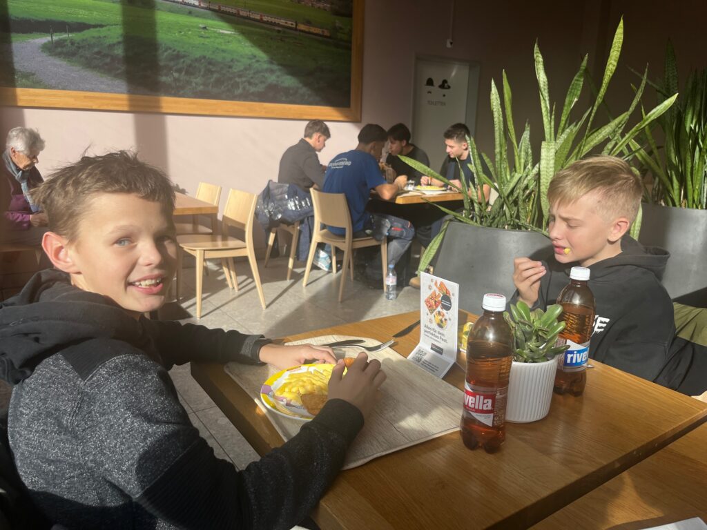 Für den Zmittag gingen wir in die Migros. Dort gab es Für mich und Dario gab es Schnitzel mit Pommes und Für Livia wusste ich nicht Beat nahm eine Suppe. Als wir das Essen bekamen, gab es 2 Teller mit Schnitzel und Pommes, eine Suppe und Chicken Nuggets. Aber Livia meinte dann dass das Schnitzel ihr wär also nahm ich die Chicken Nuggets. Die Chicken Nuggets waren RICHTIG FEIN.